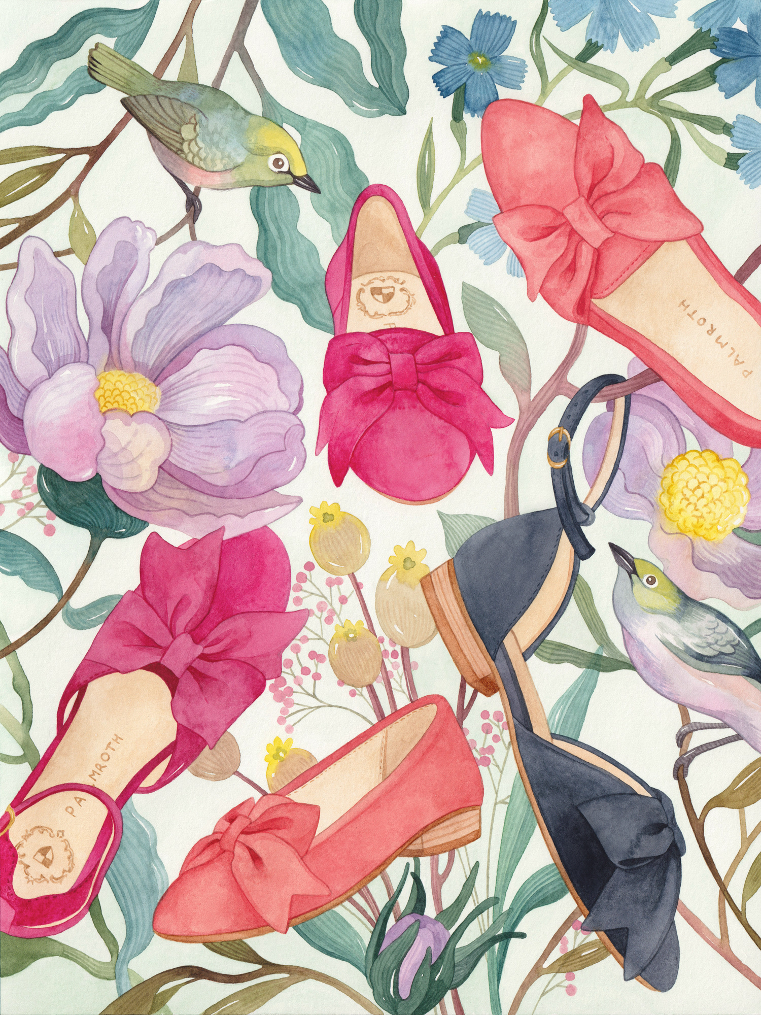 I created an aquarelle illustration that works in many different purposes: in Palmroth window display at Tampere Showroom store and in print and web.